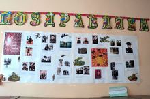 Необычно поздравили дети старшей группы своих пап и дедушек: оформили стенгазету с фотографиями, на которых изображены все, кто прошел службу в разные годы в Вооруженных Силах нашей армии.