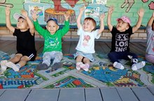 Каждое утро наши детки делают утреннюю зарядку, ведь зарядка является обязательным элементом распорядка дня. Особенно любят лето, ведь летом зарядка проходит на спортивной площадке, на свежем воздухе, под веселую музыку. Зарядка – это отличный способ избавиться от утренней сонливости, она дает детям прилив энергии и бодрости нашим любимым деткам! Упражнения утренней гимнастики развивают мускулы, гибкость, повышает иммунитет. Проводят зарядку инструктор по физической культуре либо воспитатель.