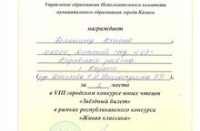 Наша воспитанница Бомонина Ксения заняла II место в городском конкуосе юных чтецов "Звездный билет" в рамках республиканского конкурса "Живая классика"