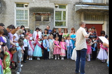 В детском саду прошел последний дошкольный бал. Выпускники детского сада вместе с гостями после окончания утренника вышли на улицу для того, чтобы выпустить в небо шары - как символ последнего дошкольного бала.
