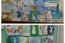 В детском саду в двух зданиях проходит выставка детского рисунка "Зимние узоры".