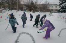 Малайлар-кызлар кышның суыкларыннан бердә курыкмый. Саф һавада уйнарга чыгу – алар өчен сөенеч. Һәр төркемнең үз җир бүлемтеге матур итеп бизәлгән. Анда аларга төрле уеннар уйнарга мөмкин: кемнең күңеленә нәрсә хуш килә – барысы да әзер. Малайлар хәрәкәтле уеннарны ярата икән – алар өчен хоккей таяклары шунда, кемгәдер чаңгыда йөрү ошый – шунда ук чаңгылар да бар. Ә барлык төркемнән балалар таудан шуарга ярата.