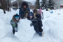 Лепим мы снеговика, из пушистого снежка.