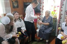 Сегодня ученики 4г класса поздравили ветерана ВОВ Ахмадееву Амину Гаязовну с праздником.