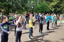 Утренняя зарядка в пришкольном лагере "Березка" 06.06.2022