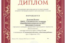 Поздравляем Золотову Полину, Дипломанта 1 степени городского конкурса декоративно-прикладного творчества, в номинации "Смешанная техника, обьемная работа".