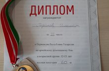 Гарипова Ильшата, ученика 7А класса за 2 место в Первенстве Республики Татарстан по армейскому рукопашному бою.