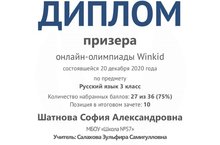 Ученица 3В класса - призер олимпиады по русскому языку. (Учитель: Салахова З.С.)