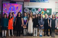 Учащиеся школы поздравили педагогический коллектив с Наступающим праздником весны Днем 8 Марта!