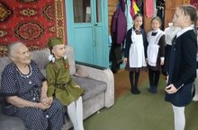 Ученики 4Г класса вместе с классным руководителем Сайфуллиной Мунирой Шамилевной, частые гости в доме ветерана Великой Отечественной войны Ахмадиевой Амины Гаязовны.