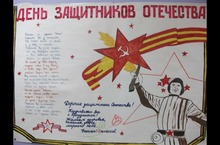 В фойе школы организована выставка стенгазет, рисунков «С чего начинается Родина», посвящённая Дню Защитника Отечества.