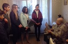 Сегодня учащиеся 8го класса поздравили ветерана Сегаль И.С. с юбилеем и днем уважения и добра!