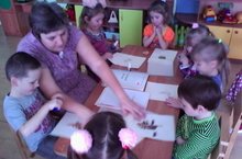 Воспитатель нашего детского сада Шафигуллина Илсояр Хазиевна уделяет особое внимание по развитию мелкой моторики у детей. Захват мелких предметов, обращение ложкой, завязывание шнурков, конструирование, игры с крупой, бусинками, пуговицами, мелкими камешками- это все применяется на занятиях с детьми.