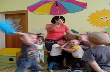 Беренче кечкенәләр төркемендә тәрбияче Рәфидә Рәфәгать кызы җитәкчелегендә"Көзге кояш нурлары"проект эшчәнлегенең бер өлеше -хәрәкәтле уен барышында.
