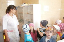 Шул максаттан безнең балаларыбыз тәрбиячеләр белән авылыбызның сәләмәтлек үзәгенә экскурсиягә бардылар. Алар белән шәфкать туташы әңгәмә үткәреп, үзенең киңәшләрен бирде.