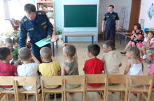 29 мая 2015 года на базе нашего детского сад было проведено мероприятие по пожарной безопасности. На мероприятии участвовали 25 воспитанников старшей-подготовительной группы, старший воспитатель Ишкулова Нурия Усмановна, воспитатель Хантимерова Зубейда Рафисовна. Были приглашены главный специалист МОНД по Балтасинскому и Кукморскому МРУНД и ПРГУ МЧС майор внутренней службы Яппаров Нурфат Габдрахманович и заместитель начальника ФГКУ «117 ПЧ ФПС по РТ» капитан внутренней службы Хабибрахманов Ильмир Альмирович. Они рассказали детям о правилах пожарной безопасности, учили как себя вести при чрезвычайных ситуациях. Наши дети задавали интересующие им вопросы. В свою очередь сотрудники МЧС поинтересовались знаниями наших детей и задавали им вопросы. Наши воспитанники уверенно отвечали на их вопросы. В конце встречи сотрудники раздали детям буклеты. Встреча оказалась полезной, дети остались довольными.