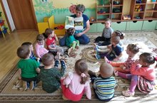 Кечкенәләр төркеме балалары кызыксынып китап карыйлар.
