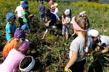 Безнең балаларыбыз хезмәттән тәм табалар. Менә бүген балалар белән берлектә суган җыю өмәсе оештырдык.