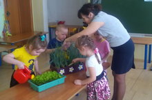 Уртанчылар төркеме балалары бүген үзләре үстергән суганның яшел кыякларын җыйдылар.