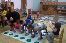Сегодня дети подготовительной группы с большим желанием играли твистер- игру.