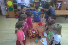 Зурлар төркемендә тәрбияләнүче балалар "Әбиемнең серле сандыгы" темасына әнгәмә кордылар. Балалар бик кызыксынып серле сандыктагы әйберләрне карадылар.