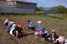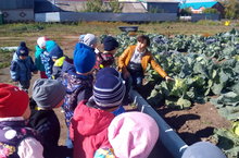 Бакчабызның территориясе искитмәле матур. Шунда безнең балаларыбыз яшелчә үстерергә яраталар. Менә бүген алар үстергән кәбестәләрен карадылар.