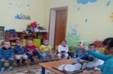 Безнең кечкенәләр төркеме балалары әкиятләрне бик яраталар. Менә бүген аларга тәрбияче апалары "Йомры икмәк" әкиятен сөйли.
