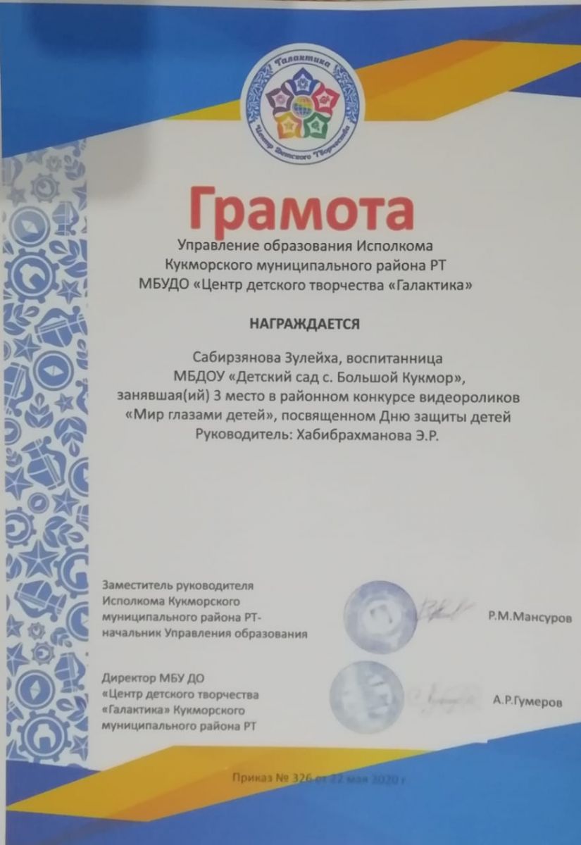 Муниципальное бюджетное дошкольное образовательное учреждение "Детский сад села Большой Кукмор" Кукморского муниципального района Республики Татарстан/ Татарстан Республикасы Кукмара муниципаль районының "Зур Кукмара авылы балалар бакчасы" муниципаль бюджет мәктәпкәчә белем бирү учреждениесе