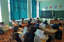 Советник директора по воспитанию Ахметова А. Р. рассказала обучающимся о зарождении театра, как вида искусства, видах театра, а затем просмотрели отрывок театра Н. Нургаязовой" Балачакны сугыш урлады",где юные актёры школьного театра "Бенефис" показали свое мастерство. -
