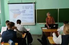 18 марта – день воссоединения Крыма с Россией. В преддверии празднования дня воссоединения Крыма с Россией советник директора по воспитанию Ахметова А. Р. провела в 8 а классе классный час «Воссоединения Крыма и России». Ребята познакомились с историей Крымского полуострова, узнали первых городах, основанных на этой территории, а также о том, что впервые территория Крыма вошла в состав тогда ещё Российской Империи при Екатерине II.