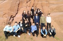 Озынайтылган көн төркеменә йөрүче укучылар саф һавада.