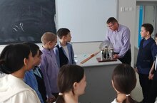 В рамках недели физики 7б классе был проведен открытый урок на тему "Источники электрического тока". Учитель Леонтьев В.А.