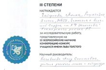 Гайфиева Алина- дипломант 3 степени всероссийской НПК имени Л.Н.Толстого/ Гайфиева Алинә- Л.Толстой исемендәге республика фәнни-гамәли конференциясендә 3 дәрәҗә дипломант 09.11.2019