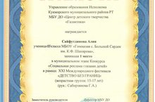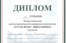 Билалова Эндже- дипломант 3 степени межрегиональной научно-практической конференции школьников "Туган ягым-яшел бишек"/ Билалова Энҗе- укучыларның регионара "Туган ягым-яшел бишек" фәнни-гамәли конференциясендә 3 нче дәрәҗә дипломант 09.11.2019
