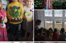 В детском саду ребятишки создали живой уголок для изучения роста живых растений.