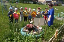 Балалар бакчасында тәрбияләнүче нәниләр белән саф һавада табигать почмагында уеннар уздырыла. Балалар үзләре табигать почмагында утыртып үстергән чәчәкләр арасында бик теләп йөрилар. Аларны тотып карау, аларга кунган бөҗәкләрне күзәтү сихри дөньяның матурлыгын күрә белергә кызыксыну уятып үзенә тартып тора.