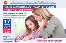 Министерство образования и науки Республики Татарстан совместно с Общественным советом при МОиН РТ запускают новый проект для родителей "Республиканское родительское интернет-собрание. Как учить, а не мучить?" по актуальным вопросам воспитания. Подключайтесь и задавайте свои вопросы специалистам по адресу roditelirt@mail.ru. Он-лайн трансляция на сайте киу.рф 17 ноября 2017 года с 12.00 до 13.30