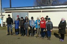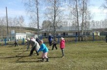 Мәктәп территориясендә язгы җыештыру эшләре бара.