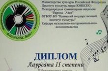 Мәктәбебез укучысы Әминова Гөлназ Казан шәһәрендә үткән " KAZAN-MUZIK ЙОРТ " II Халыкара инструменталь башкаручылар конкурсында II дәрәҗәдәге Лауреат исеменә лаек булды, Диплом белән бүләкләнде. Укукчыбызны бу җиңүе белән ихлас котлыйбыз, киләчәктә һәр эштә зур уңышларга ирешүен телибез.