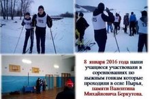 6 января 2016 года была организована лыжная гонка для учащихся 8-11 классов для отбора к межрегиональным соревнованиям по лыжным гонкам памяти В.М. Беркутова.