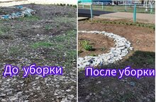 В рамках санитарно-экологического двухмесячника Сотрудники филиала МБОУ провели чистку территории детского сада