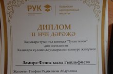 3 нче сыйныф укучысы Гыйльфиева Зәмирә Туган тел көнендә"Туган телем" дип исемләнгән халыкара конкурста 2 нче дәрәҗә диплом белән бүләкләнә.Котлыйбыз! (Җитәкчесе- Абдуллина Г. Р).