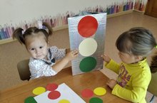 В целях формирования элементарных представлений детей о значении цветов светофора и правилах дорожного движения в разновозрастной группе 1-3 лет провели дидактическую игру "О чем говорит светофор"