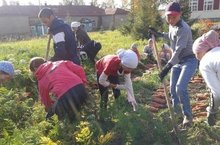 Укучылар һәм укытучылар көче белән мәктәп яны тәҗрибә участогында үстерелгән яшелчәләрдән мул уңыш җыеп алынды.