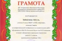 Ученица 8 класса Зайнагиева А. заняла I место на межрегиональной конференции исследовательских работ обучающихся "Моё Я в Большой Науке" им. Р.Н. Утямышева в секции "Декоративно-прикладное творчествр". Руклводитель Сахабиева Э.М. Поздравляем!