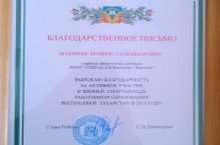 Активное участие учительницы физкультуры нашей школы Шакировой Нурфии Галиакберовны в Республиканской спартакиаде работников образования отмечено Благодарственным письмом Главы администрации Кукморского района. Поздравляем, желаем ей дальнейших успехов и крепкого здоровья.