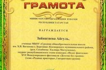 Ученица нашей школы Зайнагиева А. участвовала во Всероссийских творческих конкурсах "Наша славная победа", "Весенняя капель" в номинации "Рисунок" и удостоена Дипломам II и III степеней.