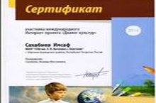 Ученик 8 класса Сахабиев Илсаф - участник международного Интернет - проекта "Диалог культур", посвящённого Году культуры в России.