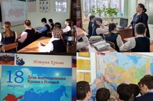 18 марта были проведены классные часы в честь воссоединения Крыма с Россией «Крымская весна. Мы вместе!» Основная цель – формирование представлений об исторической общности народов России, развитие чувства гордости за свою многонациональную страну.