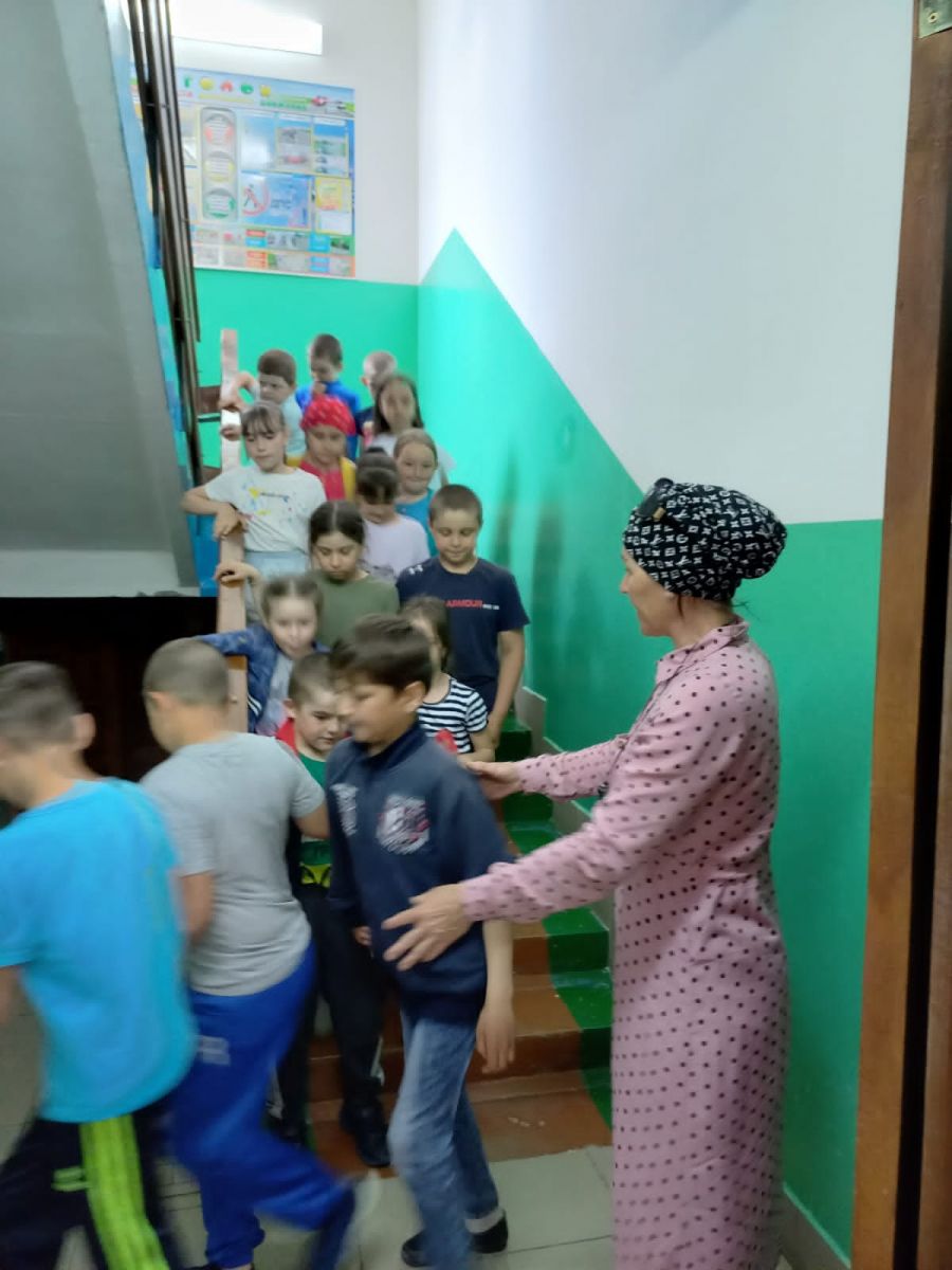 Укучыларга эвакуация вакытында үз-үзләрен тоту кагыйдәләрен исләренә төшерделәр.
